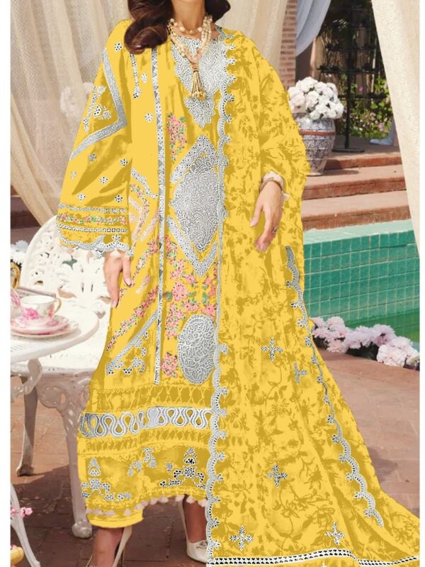 Khawaja Collection Yellow Embroidered Lawn 3 Piece Unstitched Suit – Eid Festive Wear