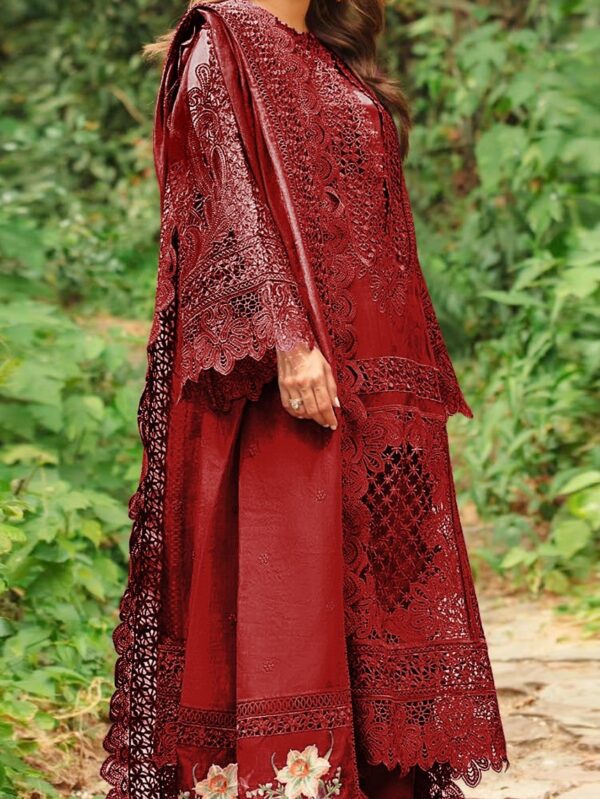 Khawaja Collection Red Embroidered Lawn 3 Piece Unstitched Suit – Festive Eid Wear