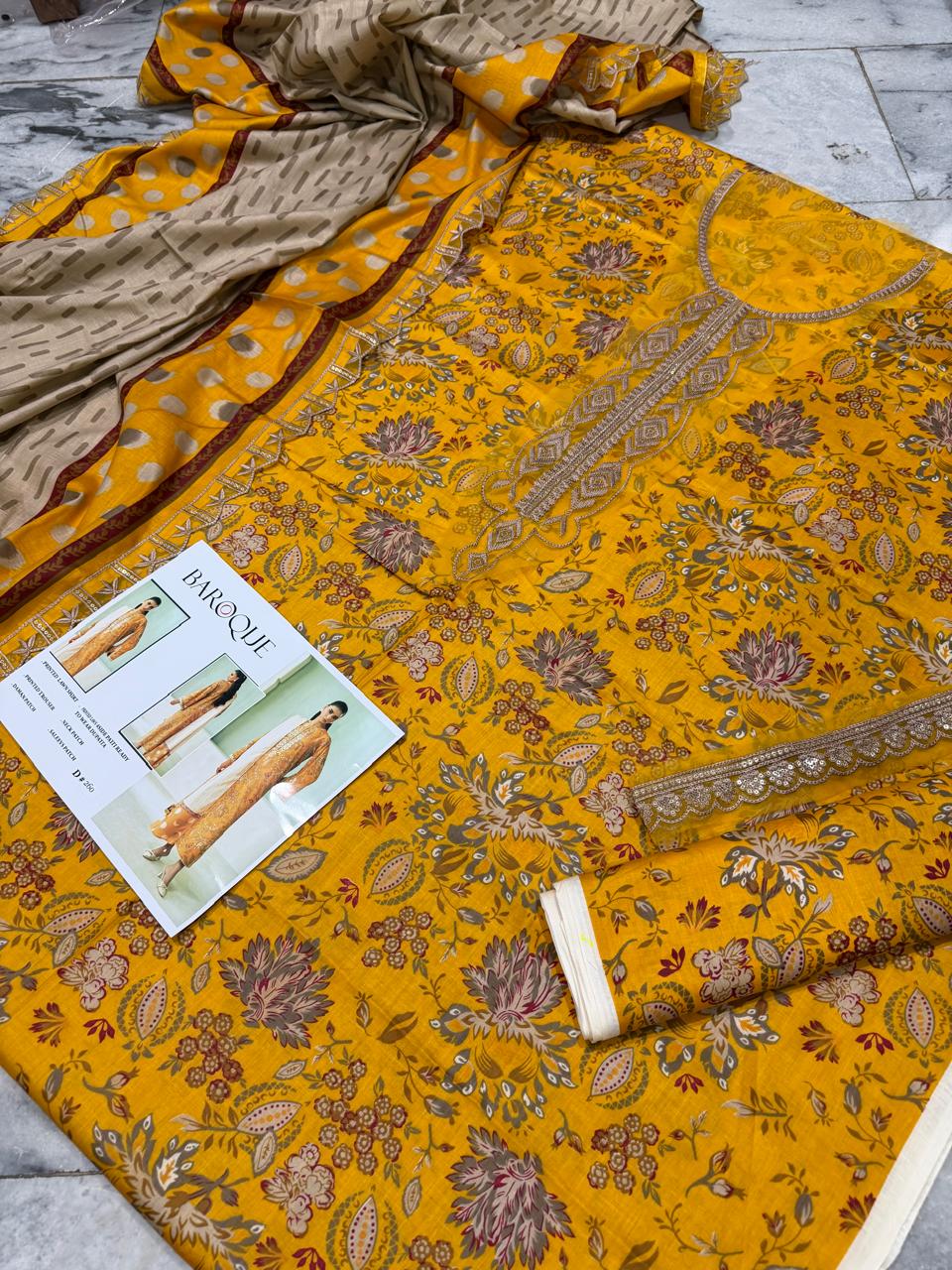 Baroque Embroidered Printed Lawn 3PC Unstitched Suit – Luxury Summer Collection