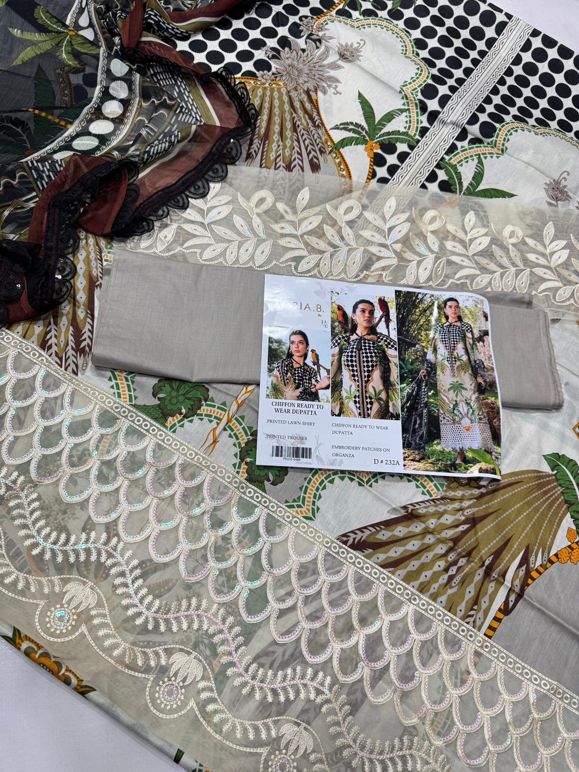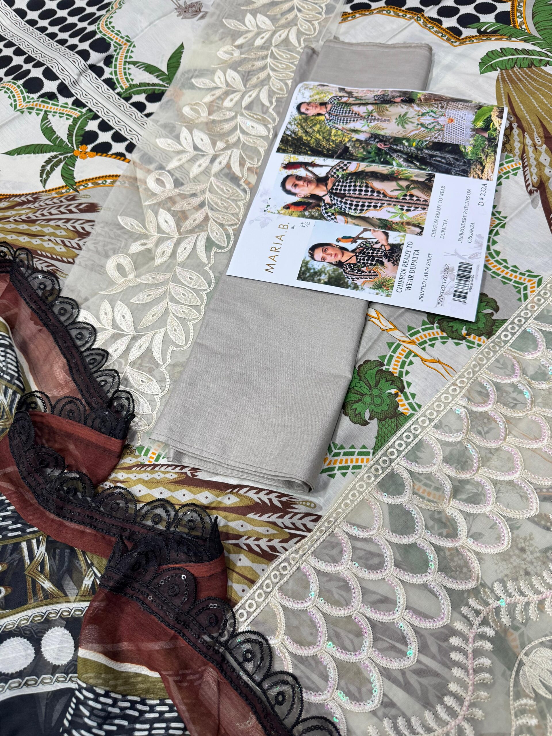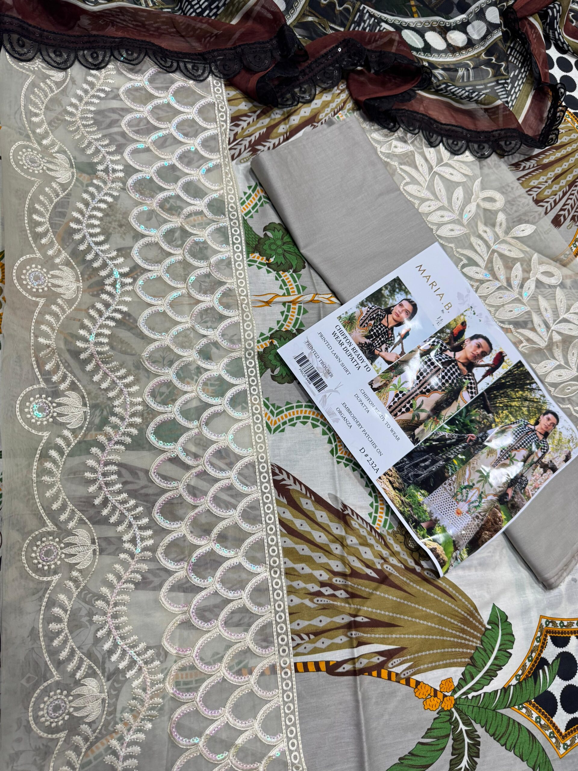 The Maria.B MPrints Embroidered Lawn Unstitched 3Pc Suit (DRL-2409) is a stylish and comfortable summer outfit perfect for everyday elegance. This 3-piece suit includes an embroidered lawn shirt, matching trouser, and a lightweight printed chiffon dupatta. Made from soft and breathable fabric, it keeps you cool and comfortable. The unstitched design allows you to tailor it according to your preferred style, while the intricate embroidery adds sophistication. Perfect for casual wear, summer outings, and festive occasions, this suit ensures a graceful and trendy look.
